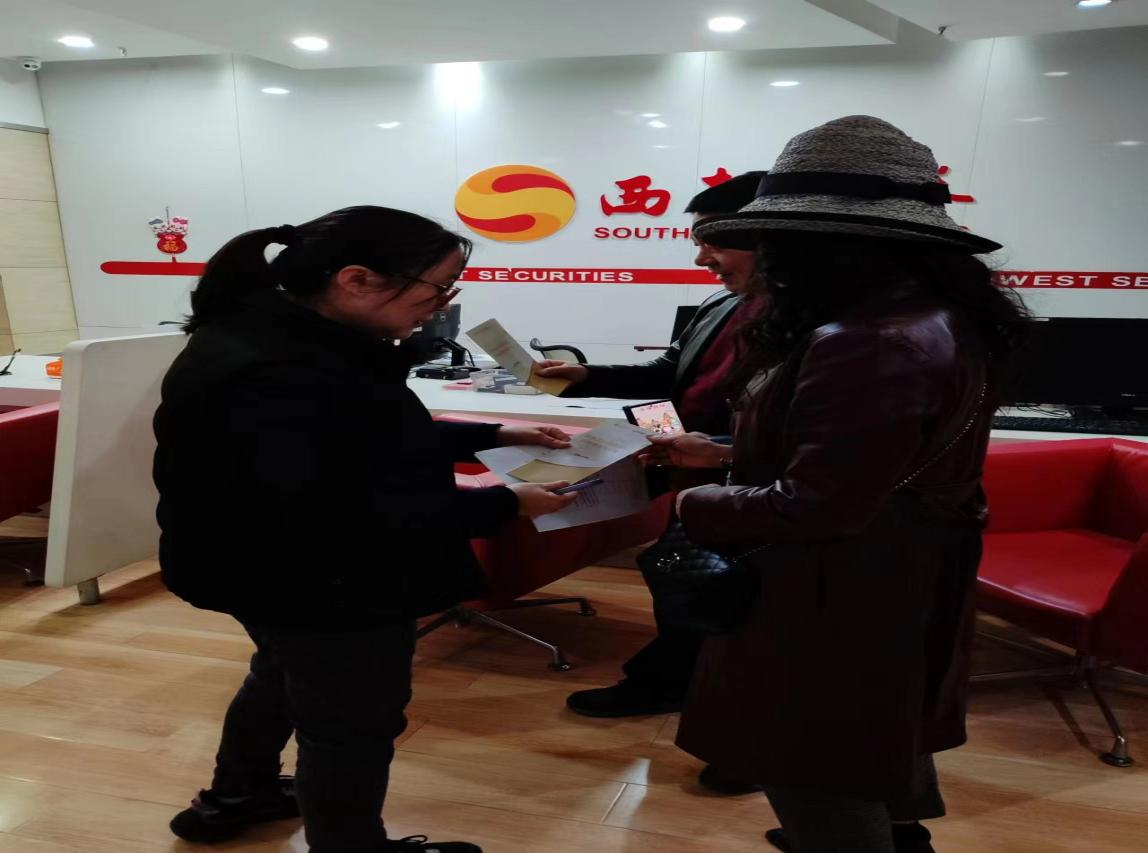 为贯彻落实3.15投资者保护主题教育活动的协会文件精神,切实做好投资者合法权益保护工作,西南证券股份有限公司甘肃分公司(以下简称“分公司”)积极组织开展了以“全面注册制,改革向未来”为主题的教育宣传活动。