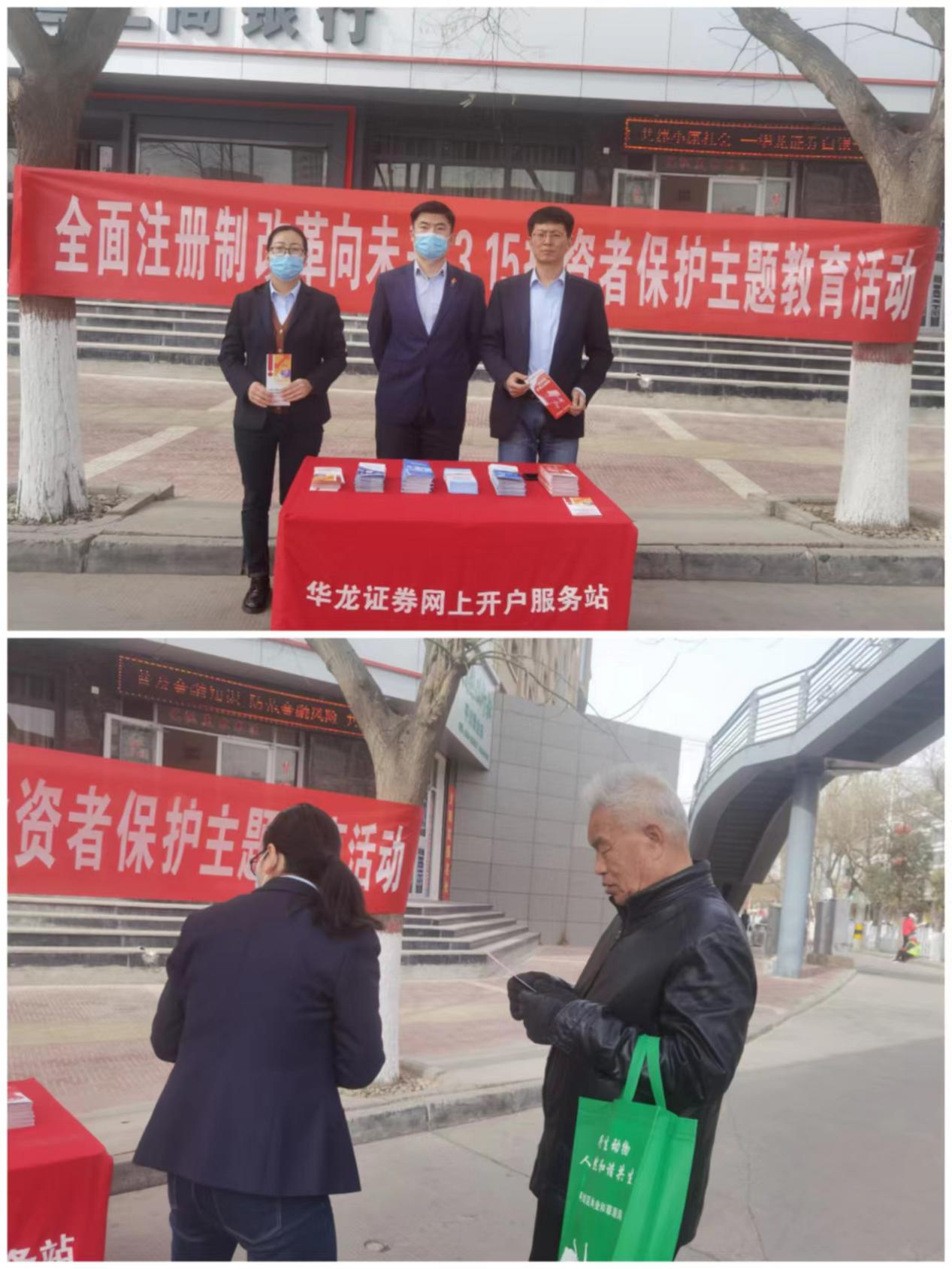 为进一步做好全面实行股票发行注册制投资者教育保护工作,维护广大投资者合法权益,持续提高中小投资者的专业知识水平和风险防范意识,引导投资者客观看待和理解全面实行注册制的意义和作用。在“3·15 国际消费者权益日”来临之际,根据监管机构要求,华龙证券白银平川区营业部组织开展了“全面注册制,改革向未来”为主题的投资者教育专项活动。