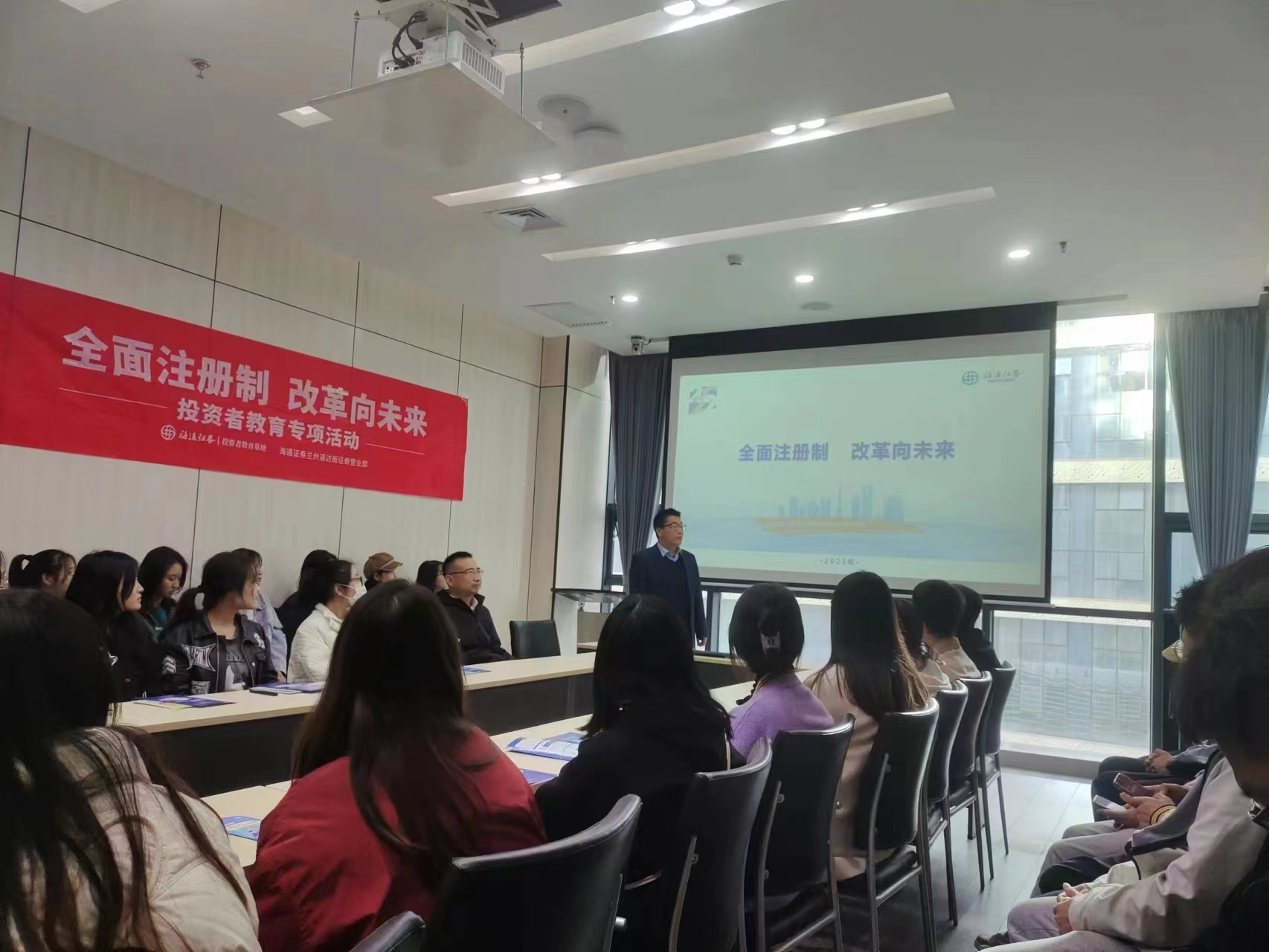 为响应公司、分公司关于《落实开展“全面注册制 改革向未来”投资者教育专项活动的通知》要求,近日,海通证券兰州通达街营业部组织开展了“全面注册制,改革向未来”投资者教育专项活动。