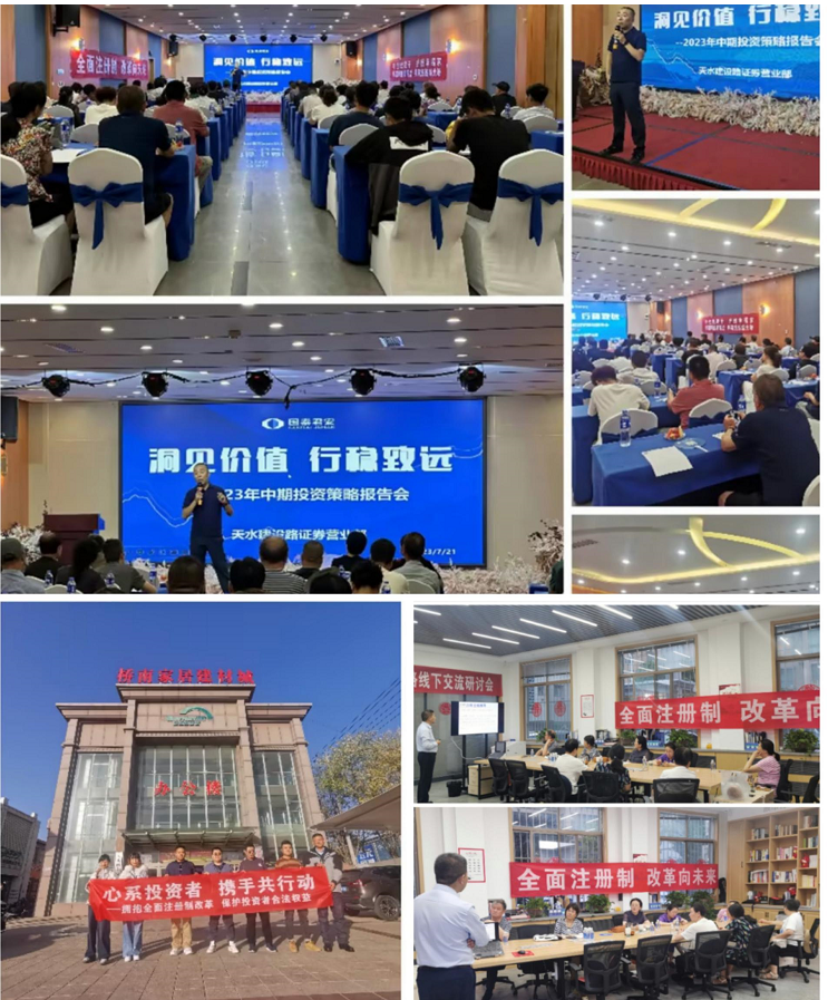 随着中国资本市场的不断发展,注册制改革试点成为推动资本市场改革的重要举措。为适应资本市场改革要求,积极响应监管部门政策,推动业务创新和转型升级,公司及分公司高度重视注册制相关活动,明确了工作目标和实施计划。国泰君安证券天水建设路营业部于2023年全年通过线上、线下、户外宣传、投教讲座、微信朋友圈转发等方式开展了一系列活动,进一步推广宣传注册制,提高投资者对注册制的认识和了解。现将活动总结如下: